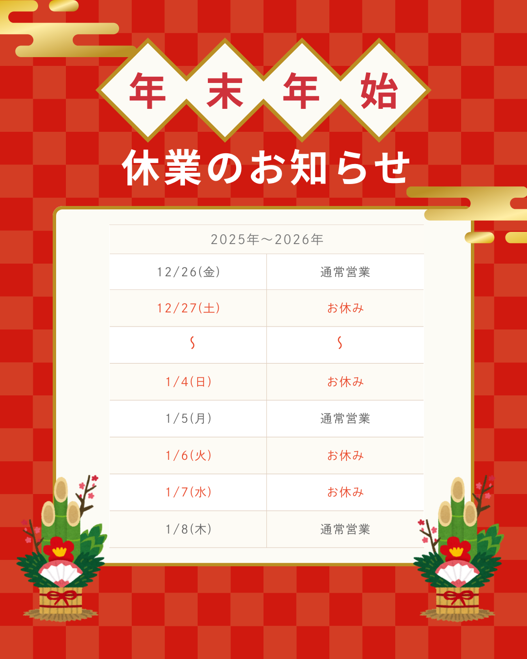 休業期間中にいただいたお問い合わせにつきましては、休業明けの営業日より順次対応させていただきます。